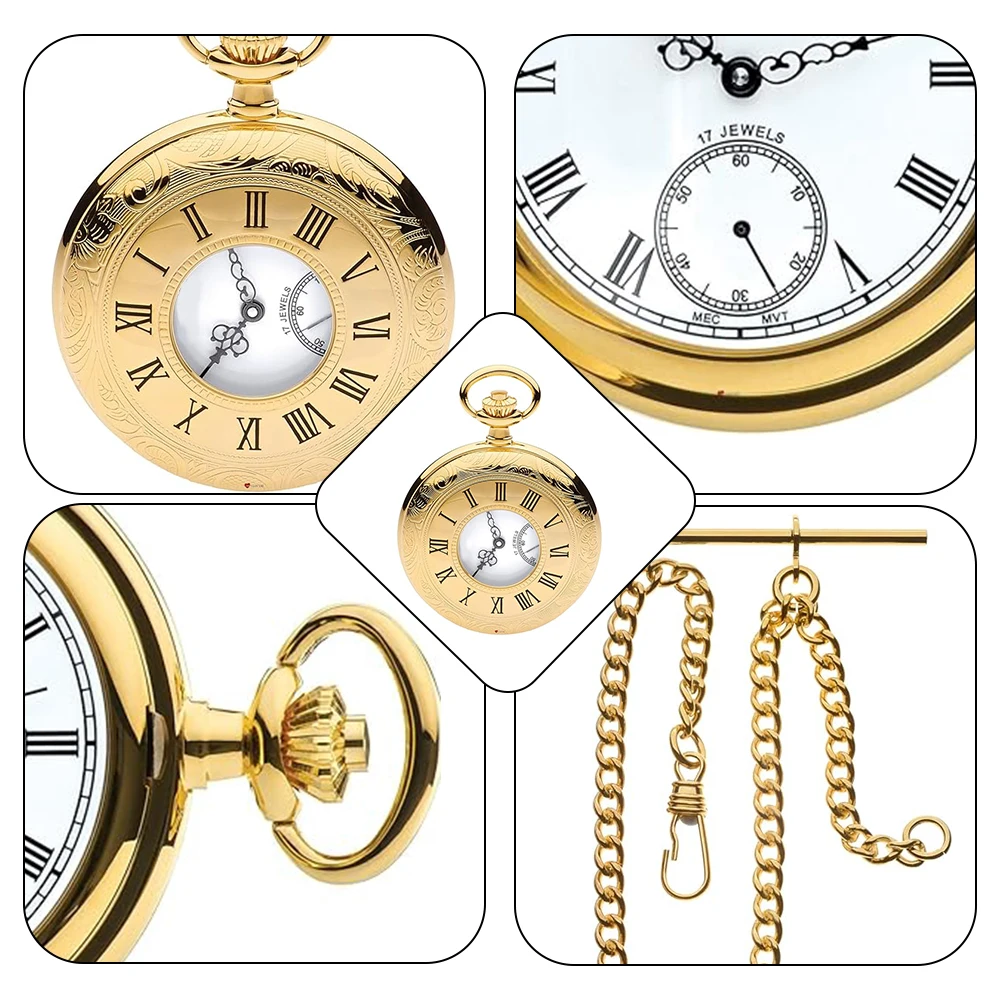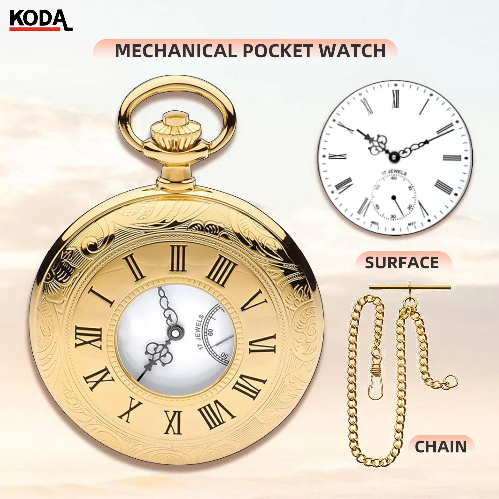 New Wholesale Custom Gold Classic Watch Mechanical Movement Big High Quality Mechanical Pocket Watch with Chain