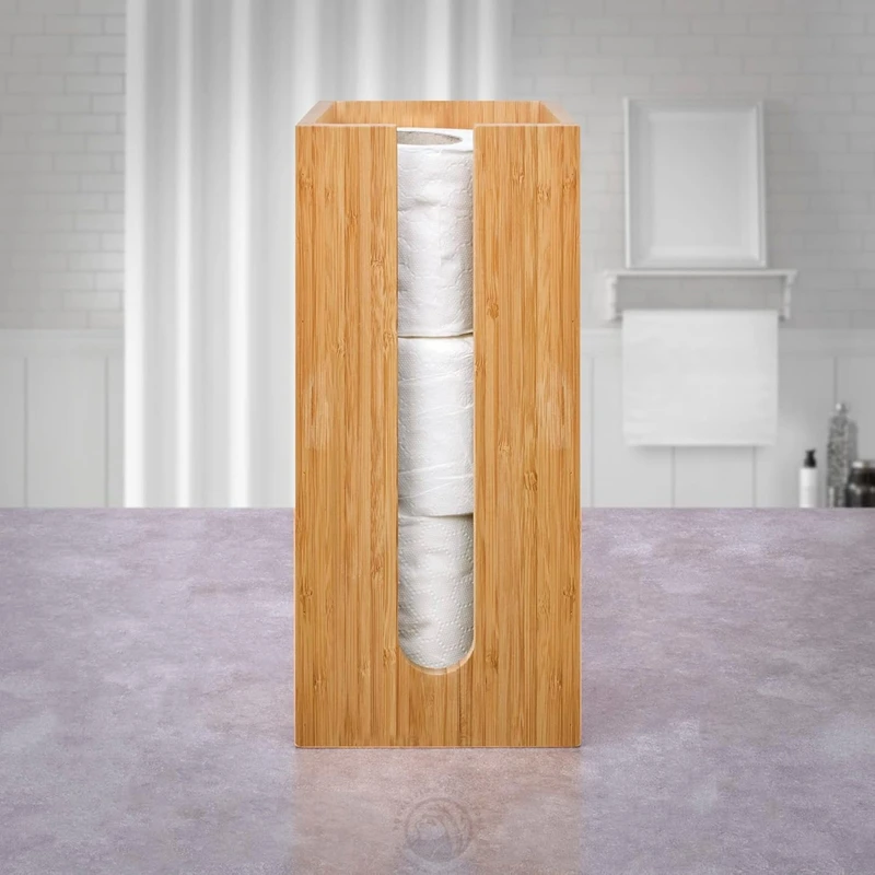 Premium Wooden Bamboo Free Standing Toilet Paper Holder Stand Toielt Paper Holder Stand Wood Perfect for Toilet Paper Storage