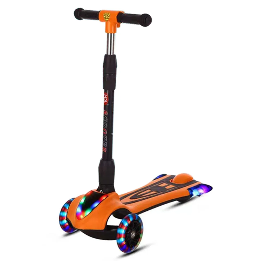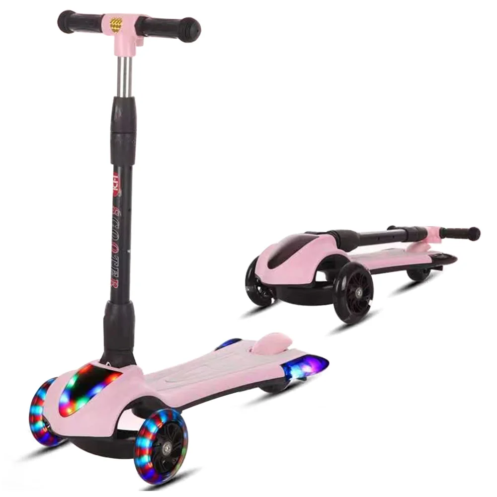 Outdoor Children's Scooter Extra Wide Deck PU Flashing 3 Wheels Lights Folding Toddlers Kick Scooter For Kids