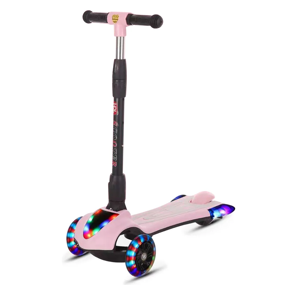 Children's Scooter 4 Height Adjustable Pu Light Up 3 Wheels Extra Wide Deck Kids Kick Scooter For Best Gifts Boys Girls