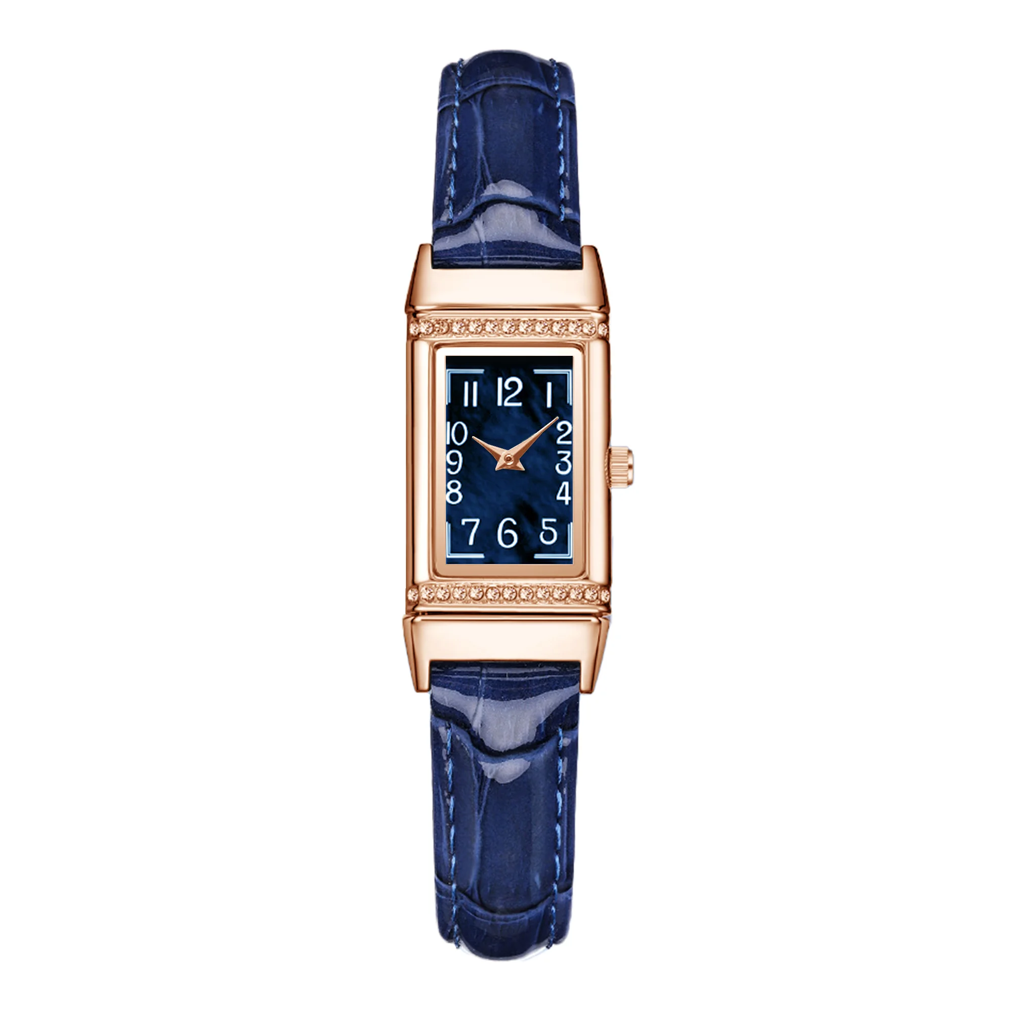 Top Brand Rose Gold Case Ladies Wristwatch Elegant Blue Pearl Dial Leather Band Watch Diamond Watch Custom Logo Women Watches