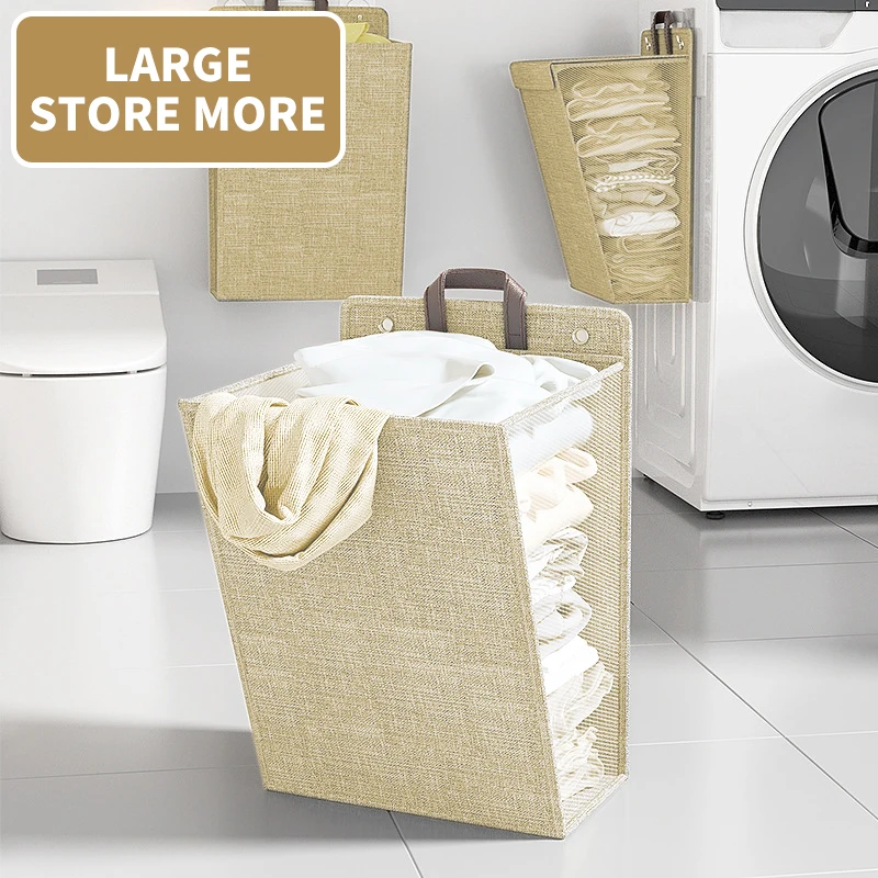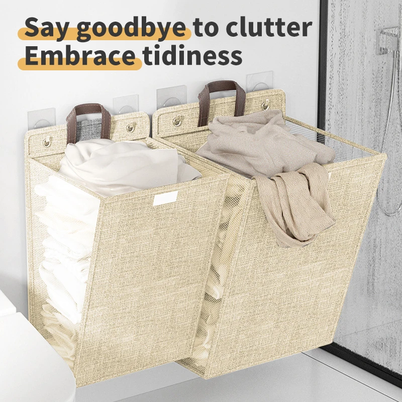 High Quality Durable over Door Laundry Hanging Hamper Space-Saving Home Opening Polyester Laundry Bag with Hooks