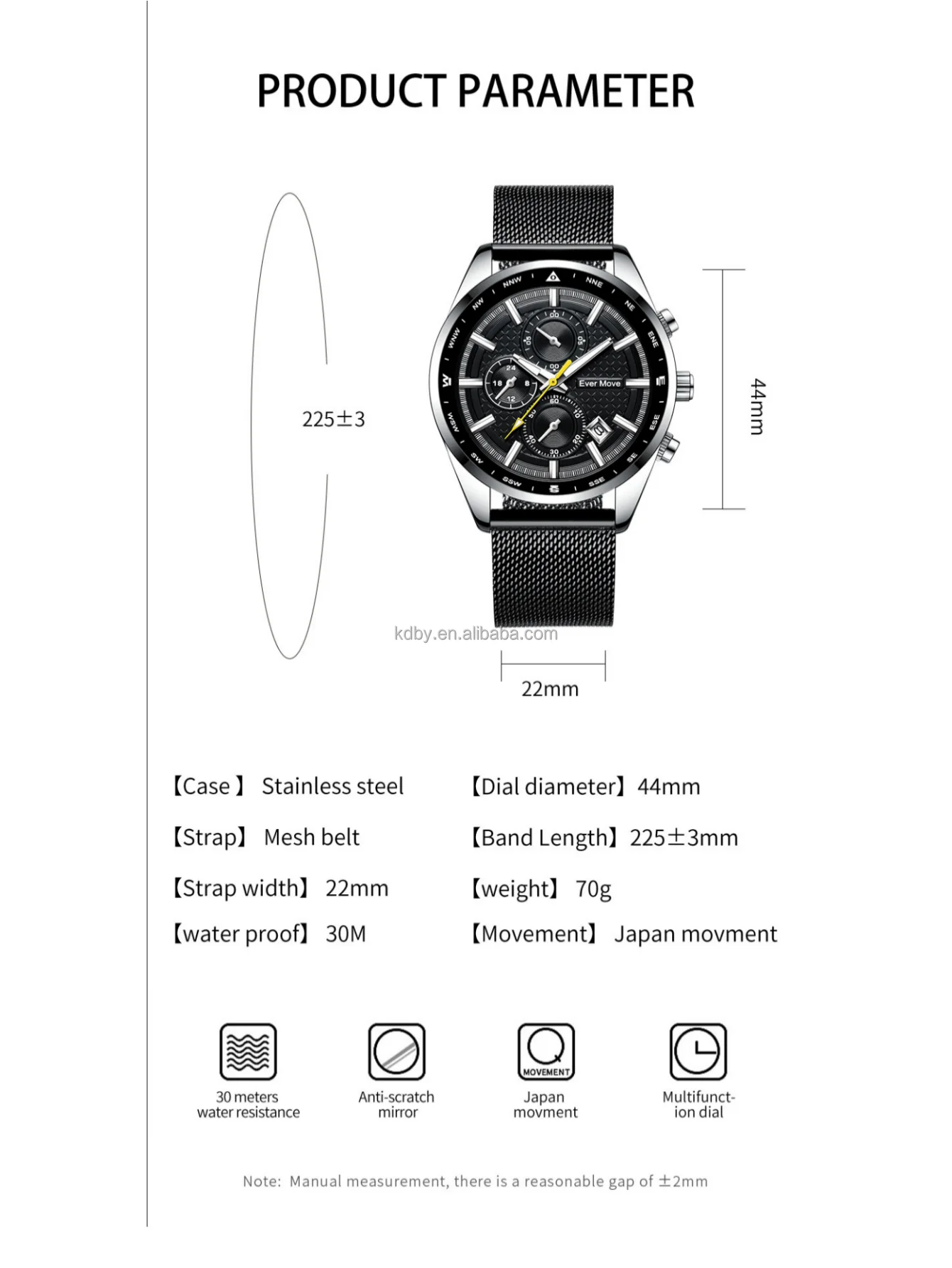 Water Proof:30M | Movement:Japan movment |