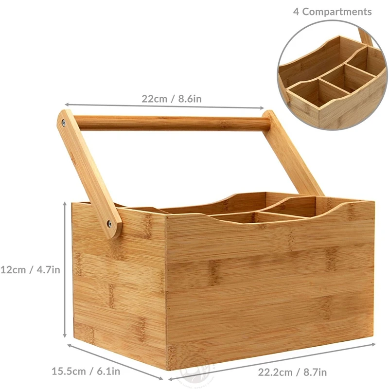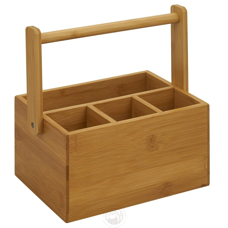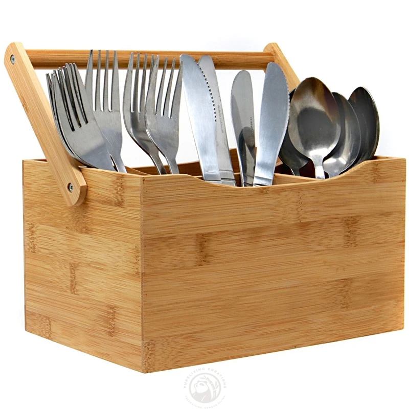 Kitchen Storage Bamboo Wooden Silverware Utensil Caddy for Parties Camping Picnic with Handle
