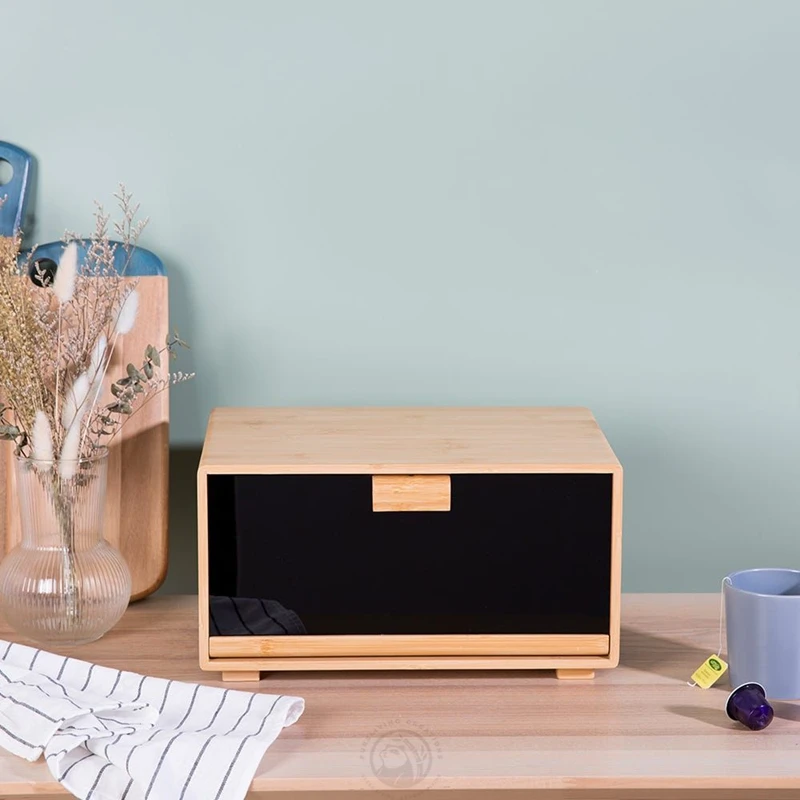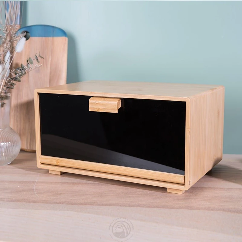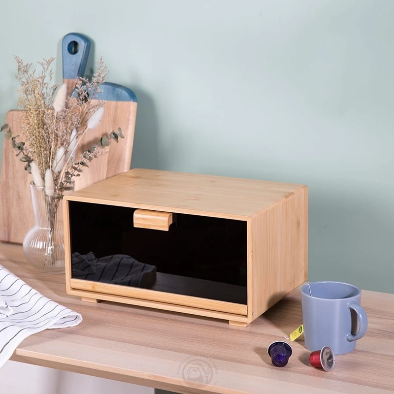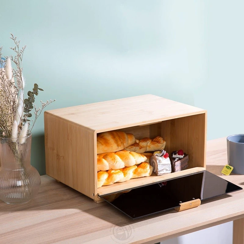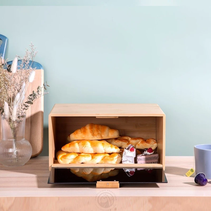 Good Quality Natural Bread Box with Clear Window and Raised Edges for Kitchen Food Storage