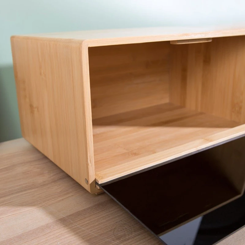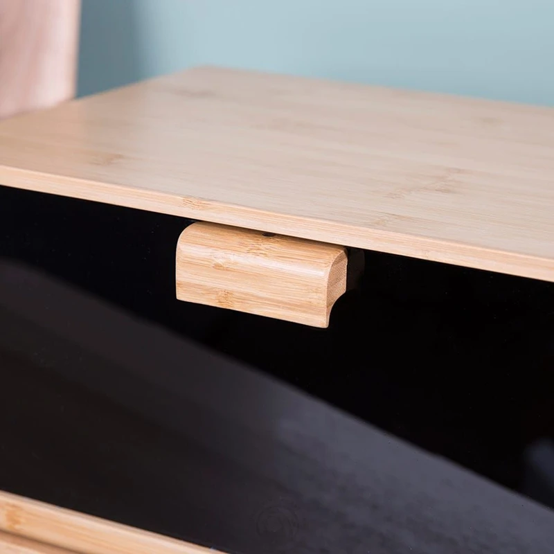 Large Capacity Unique Design Rectangle Bamboo Wood Bread Box for Kitchen Counter