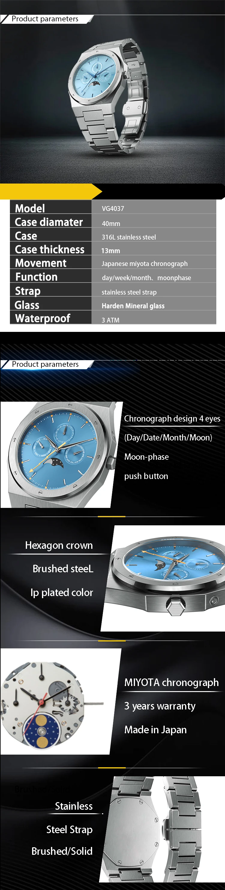 mens chronograph watch oem cronografo orologio automatic gold chronograph Multi functional