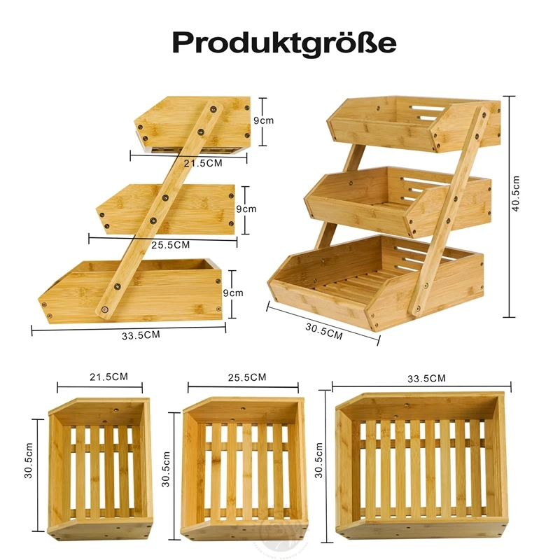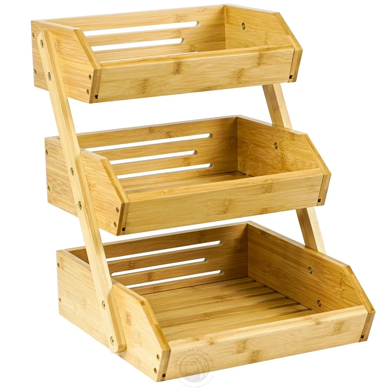 Natural Bamboo 3 tier Vegetable Storage Stand Self-assembly