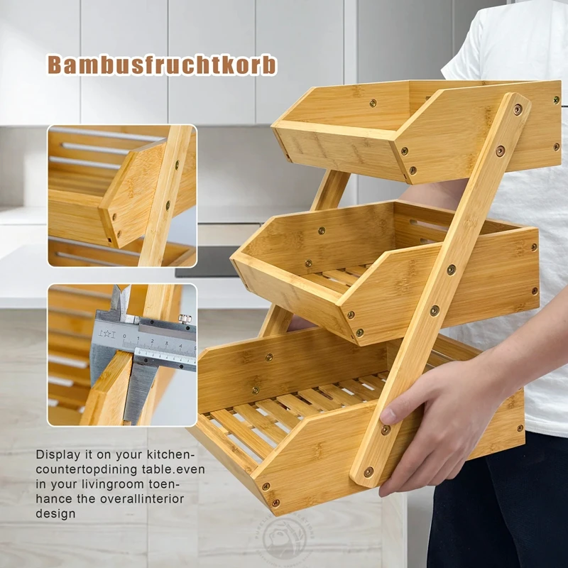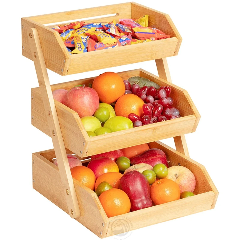 3-Tier Durable and Easy to Assemble Bamboo Fruit Stand for Vegetable Bread and Snacks