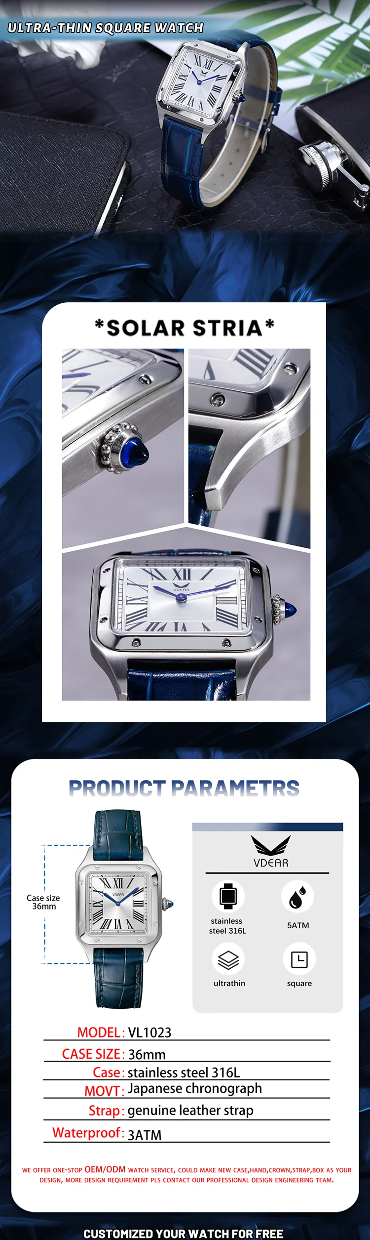 1. What's your best price for this watch? A: Quotation will depend on your quantity and material Please kindly let us know your quantity when you inquired. Any question about the prices, please contact us for discussion. Price is negotiable. 2. What's your MOQ? A: For stainless steel case, we require 200 pcs for each model, 100pcs per color. For alloy case, we require 300 pcs for each model, 100pcs per color. If you need low moq,please contact us,we can supply in stock watch with our logo if you dont mind 3.How about the sample? Can I get it for free? And the sample delivery time? A: * For samples, the cost would be 100usd/pcs for normal quartz watch; 200usd / 400usd per piece for mechanical watches and dive watches. * And shipping cost depends on which area you are. * But don’t worry, sample fee is refundable if we can reach an order for near future * For the delivery time, about 30 days are needed for existing models and about 45 days for new models. 4. What's the delivery time? A: Normally, it’s 35 – 40 days after every details confirmed for mass production.The earlier you order,the sooner we arrange production plan And goods will be delivered when balance is received. 5.What's your packing? A: We offer two packing options for our customers. * Free packing, our normal packing is 1 opp bag for 1 watch. * Customized your own watch box. But please notice it will take extra charge for it. Download Watch Boxes Catalogue. 6.Can we have our own logo or design? A: Sure, your own logo is welcomed and we can make it free for you. You can be customized on dial, caseback, band, buckle or any other places. Also your own design is welcomed, we can make samples or mass production according to your provided samples or designs. 7.What about the warranty? A: We have our QC department. All the goods would be 100% inspected before shipment. Any problems that you find after receiving the goods, please contact us immediately for solutions. We provide 1 year warranty for the customize watches and 2 years for the movement from the date of delivery. We can repair the defect part for free and stand half of the freight. 8: When does your watch factory established? A: Our watch factory is established in 2008, with over 10 years professional experience on watches line, Workers are well-trained and educated. 9: What kind of watches do you offer? A: Basically all kinds of quartz and mechanical watches, by using Japan or Swiss original movement. Different kinds of material: alloy watches. 316l Stainless steel watches, silicone watches, wood watches/ mineral glass, sapphire glass, dome glass/ Genuine full grain leather strap, vegan leather, stainless steel link band, stainless steel mesh band, nylon strap. Please note that we don’t provide digital or smart watches. 10: What's your production capacity per month? A: Our production capacity per month is 500,000pcs. 11: Do your watches meet Europe & American standard? And what kinds of certificate would you have? A: Yes, our watches do meet Europe & American standard. And we have CE, ROHS, SGS, ISO9001, you can check the copy of them on our website. 12: Would you have your own design team to design watches per our request? A: Sure, our professional design team will provide the best design drawing before sampling or order. When you need an artwork, just let us know, free charge. 13: Can you ship to my country? How long will the shipment take? A: Sure, we ship goods worldwide by DHL / TNT / UPS / EMS / FedEx / Aramex, etc. It would take about 3-7 days depend on different courier you choose. Default courier is DHL(door to door). The cost mostly depends on the final choice for the watches models, packing and shipping method, for sure we will recommending the most economic one for you.