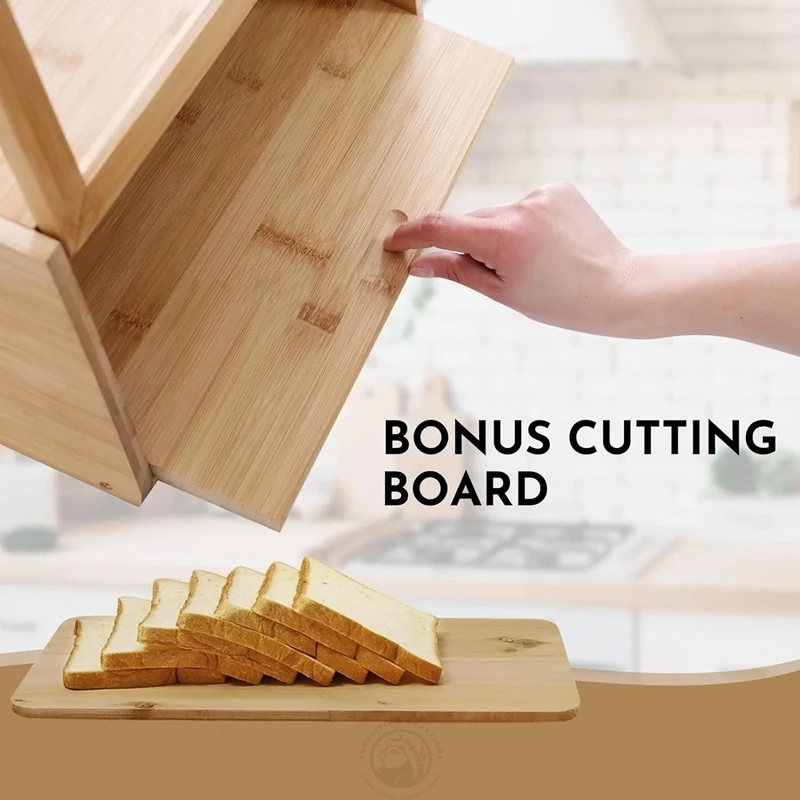 Bamboo Bread Box with bonus cutting board for Kitchen Counter, Large Capacity for Loaf, Sandwich Storage