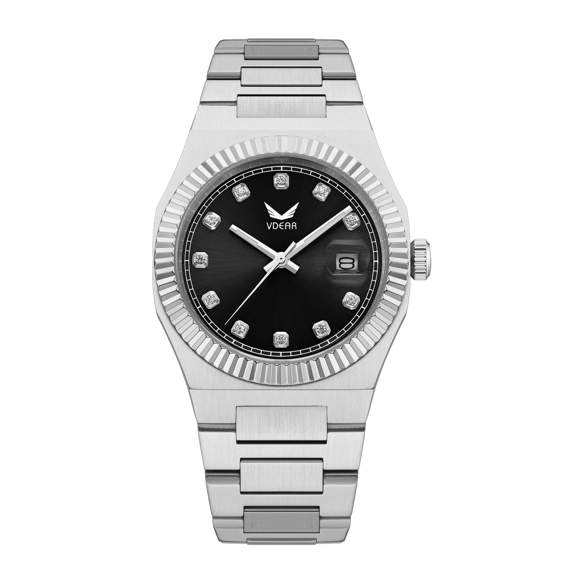 Classic Male Quartz Sunray Dial Calendar Montre De Luxe Homme Original Stainless Steel Watch Strap Diamond Watches For Men