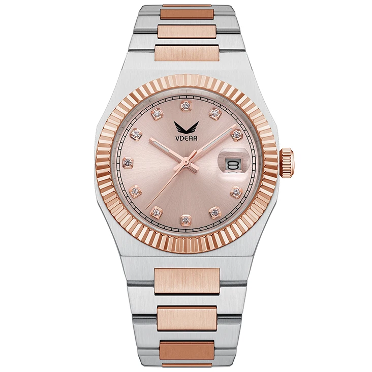 Fashion Gents Quartz Luminous Hands Calendar Simple Business Sunray Dial Watches For Men Waterproof Men Rose Gold Diamond Watch