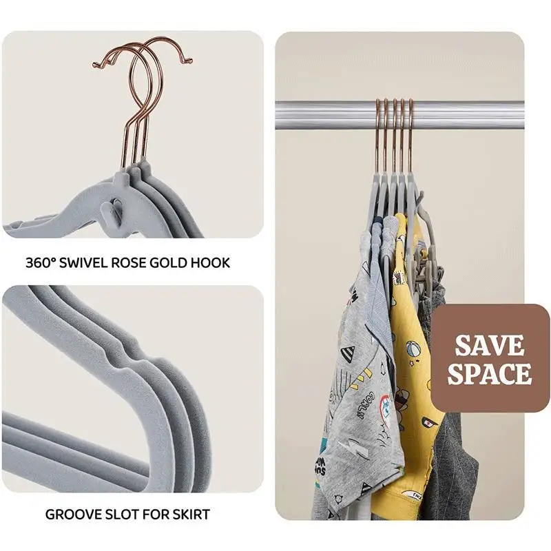 Factory Customized Non Slip Clothes Hanger Trousers Coat Gray Velvet Clothing Hangers with Clips