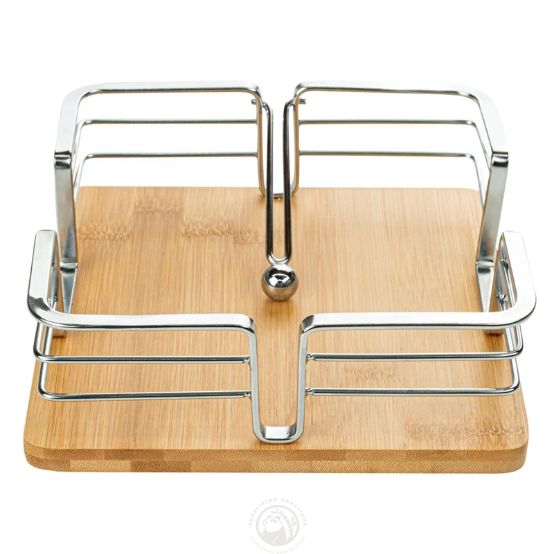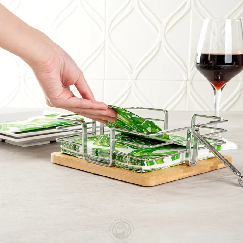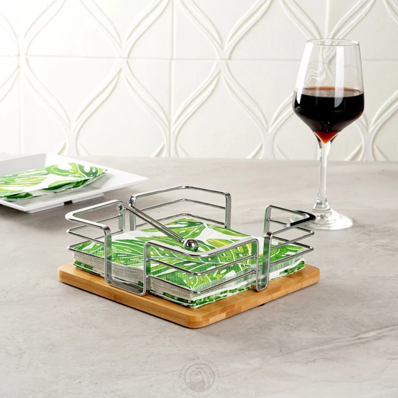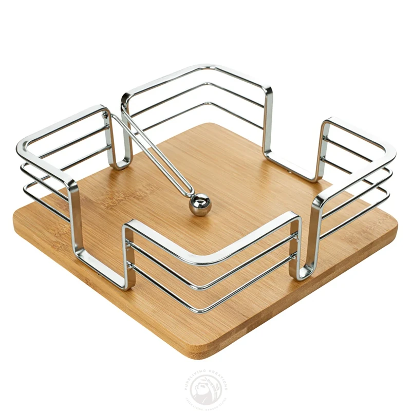 Square Shape Stack Cocktail Napkins Natural Bamboo and Metal Napkin Holder with Weighted Ball