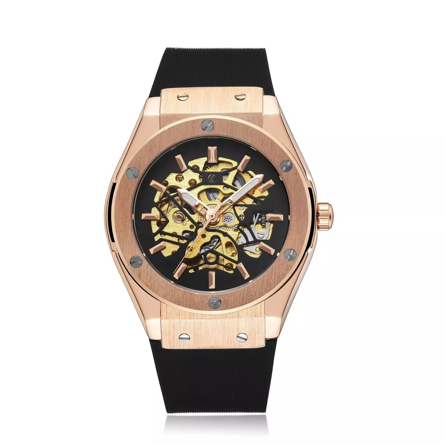 Product Name: | Black Rubber Watch Strap Custom Watches Men Customise Logo Automatic Mechanical Skeleton Watch For Men | ||||