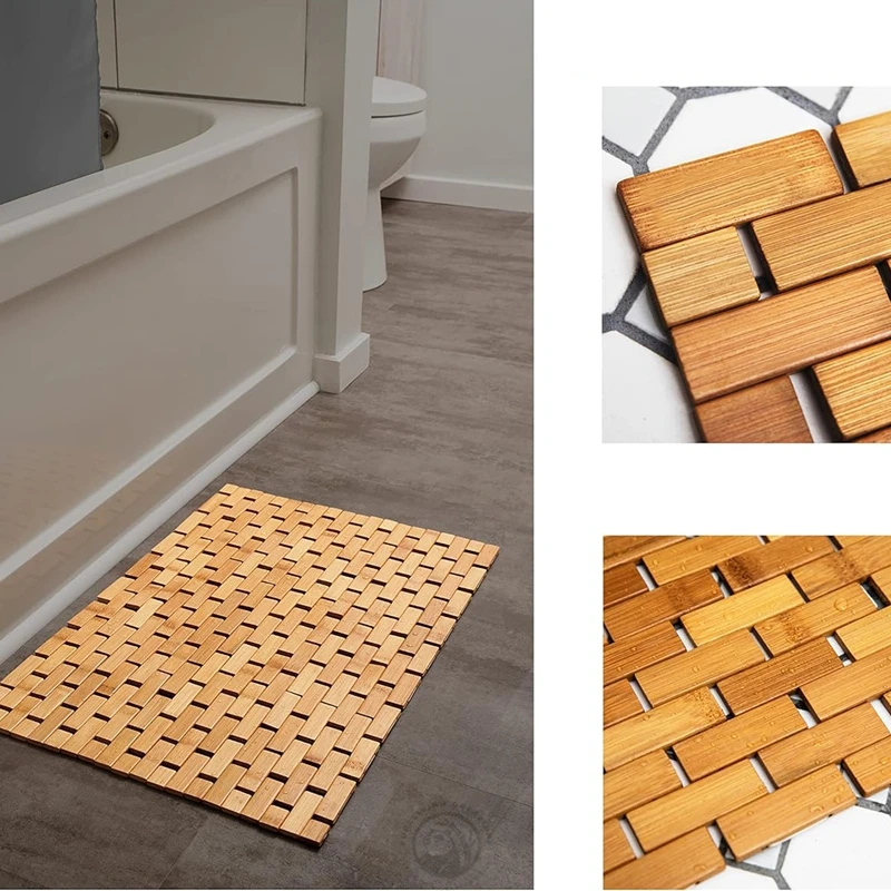 Luxury Non-slip Bathroom Natural Foldable Bamboo Bath Mat Bamboo Wooden Bath Rugs Sauna Spa Steps Decor