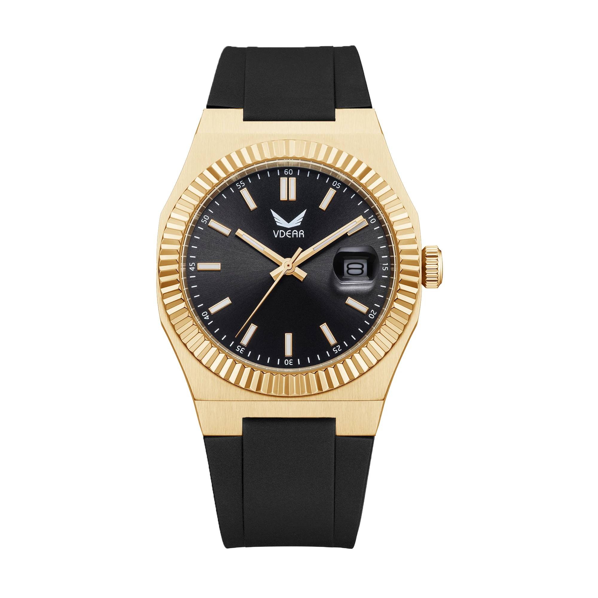 Leisure Design Black Dial Luminous Hands Date Montre Luxe Custom Stainless Steel Watch With Silicone Band Golden Watches For Men