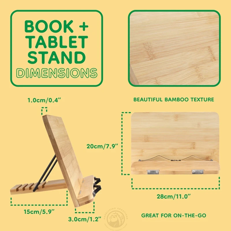 Multi-purpose Lightweight Bamboo Book Stand Cookbook Holder with 5 Adjustable Height