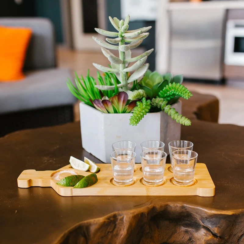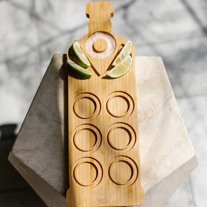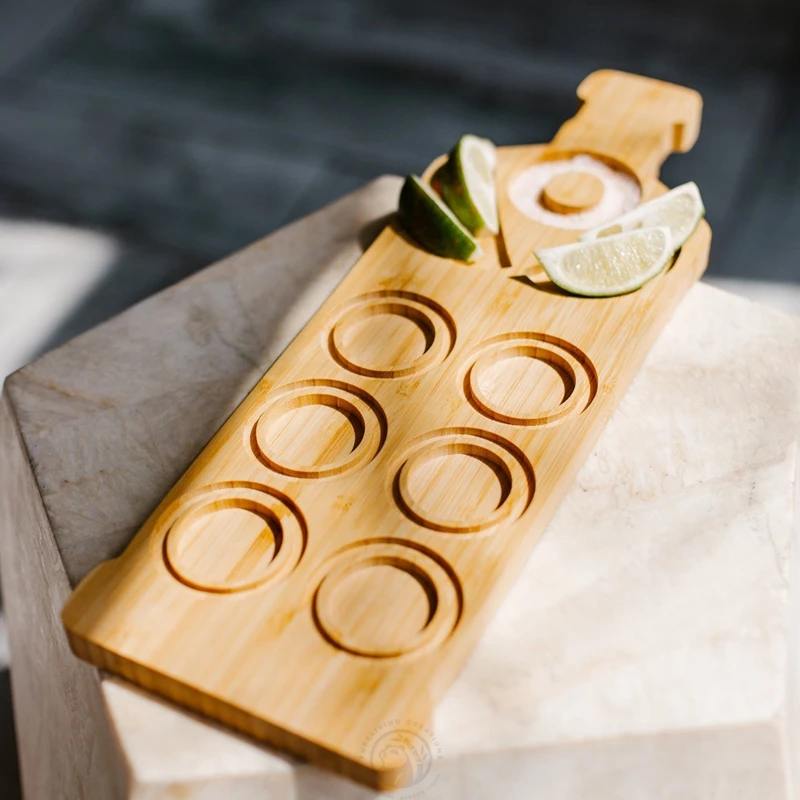 Custom Solid Bamboo Tequila Party Tray Tequila Flight Board for Gift Sets