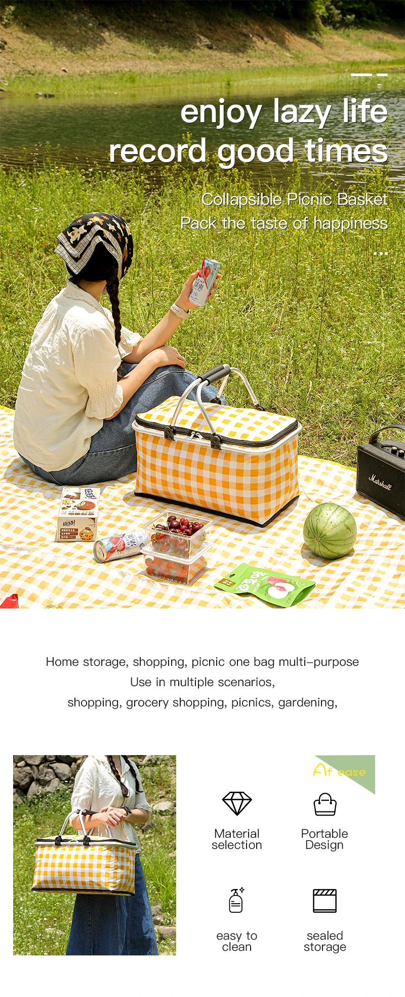 Multifunction Handle Design Household Storage Shopping Picnic Bags Large capacity Insulated Lunch Bag Picnic Basket