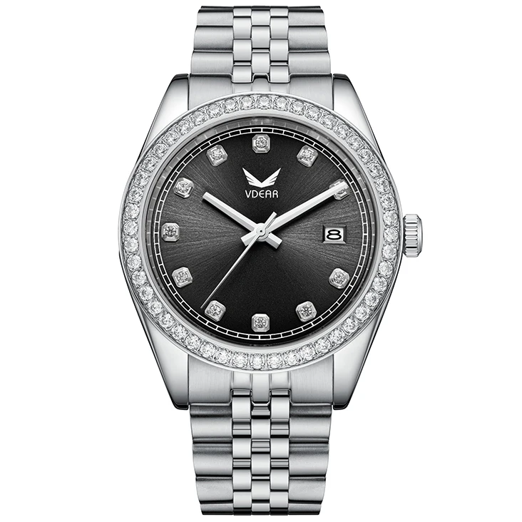 Male Fashionable 5atm Waterproof Diamond Scale Black Dial Calendar Montre Homme Quartz Watches Luxury Men Stainless Steel Watch