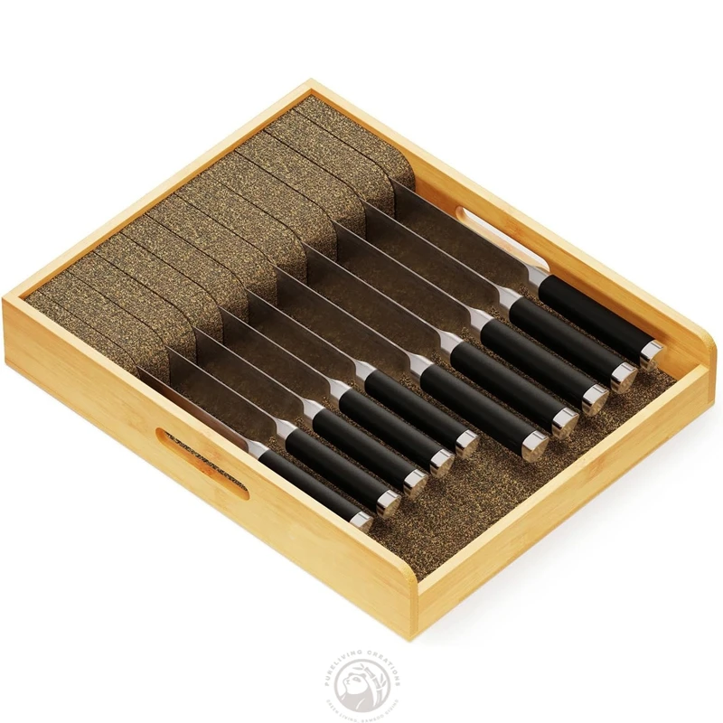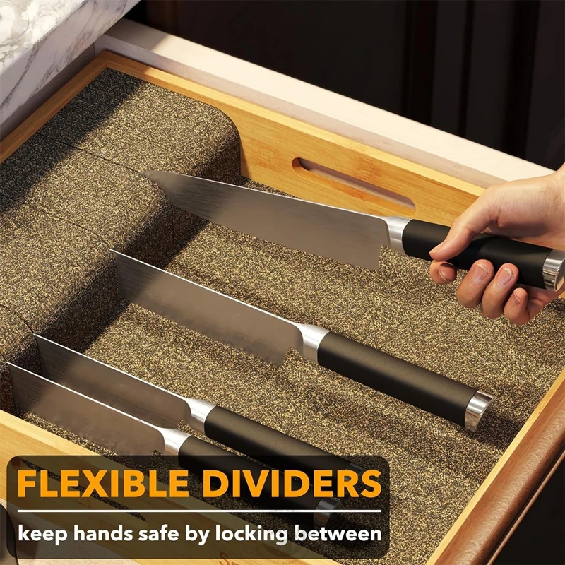 In-drawer Type SOlid Bamboo Wooden and Cork Storage Place Knife Drawer Organizer Bamboo Insert Dock