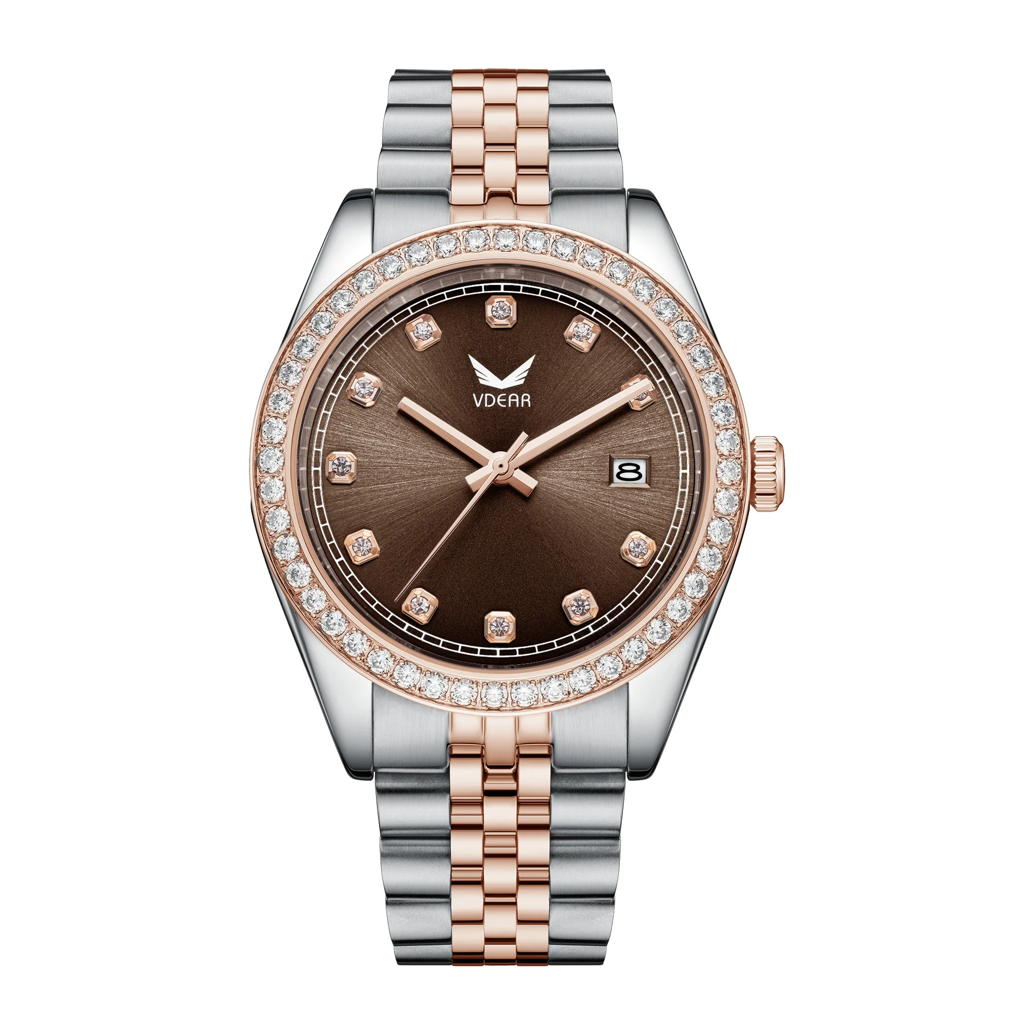 Male Brown Dial With Diamond Scale Luxury Calendar Stainless Steel Waterproof Montre Odm Steel Case Quartz Elegant Watch For Men
