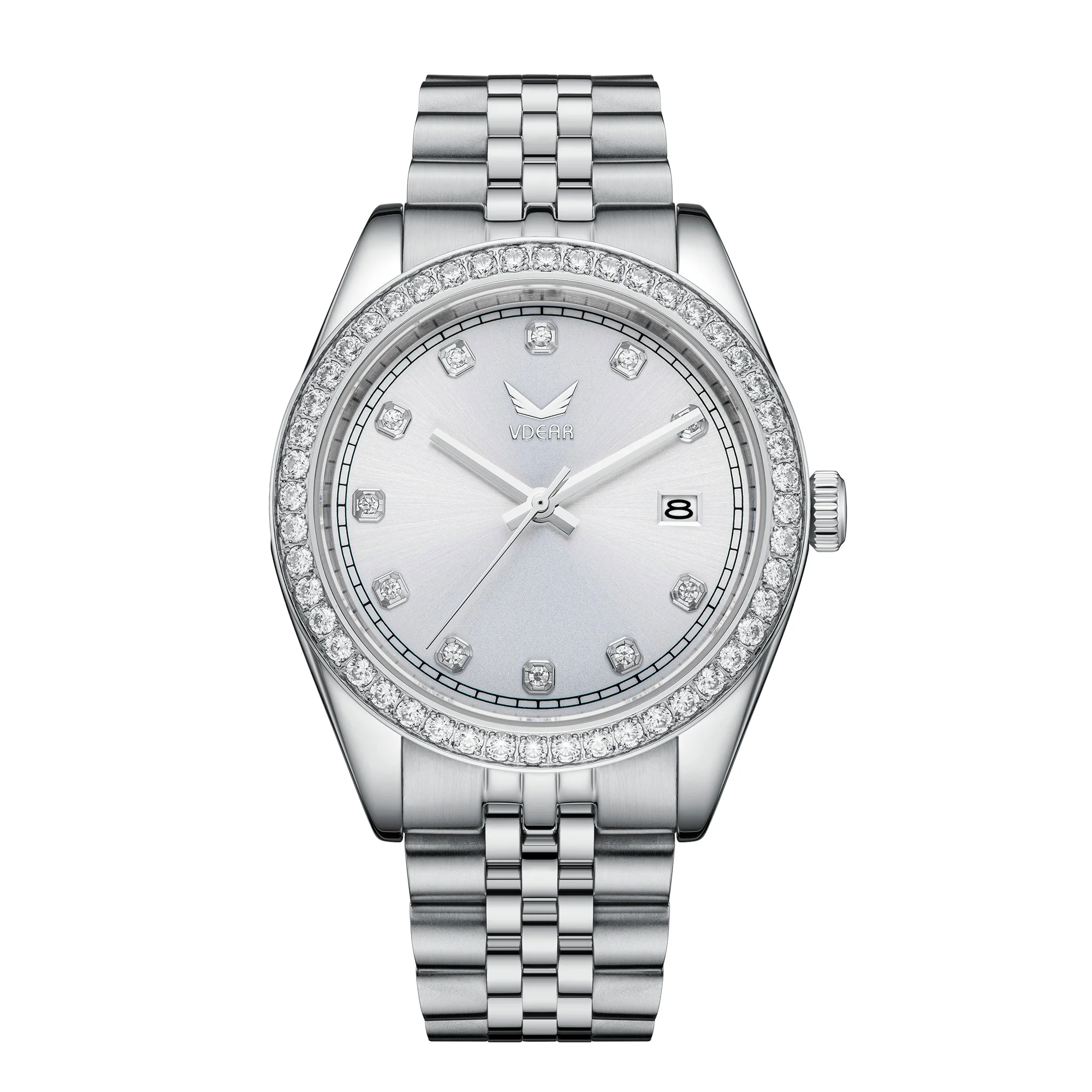 Stainless Steel Strap 40mm Crystal Bezel Sunray Dial With Calendar Waterproof No Logo Mens Quartz Watch Good Quality Herren Uhr