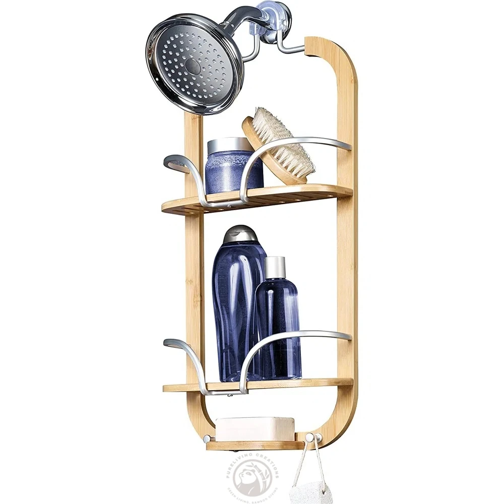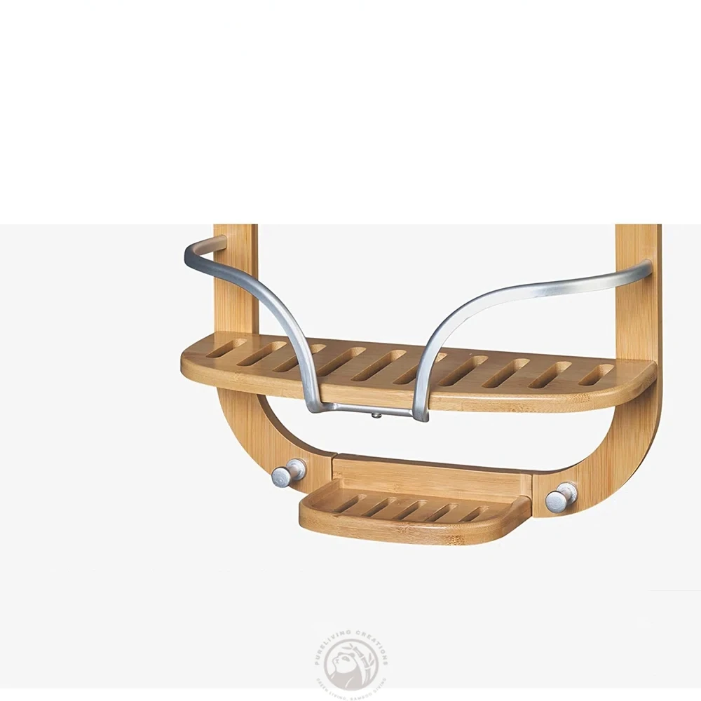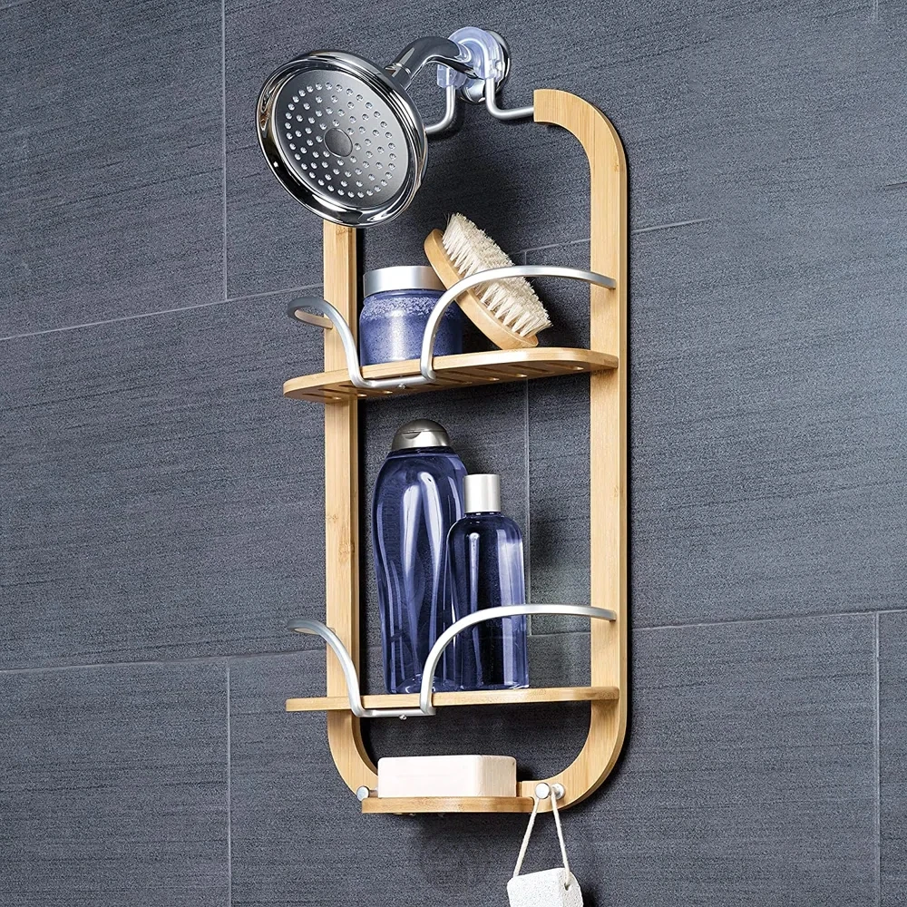 Rust Aluminum and Bamboo Hanging Over-the-Shower Caddy, Satin Chrome