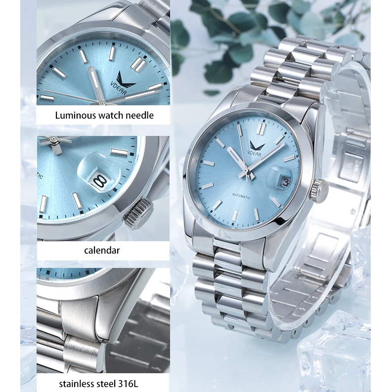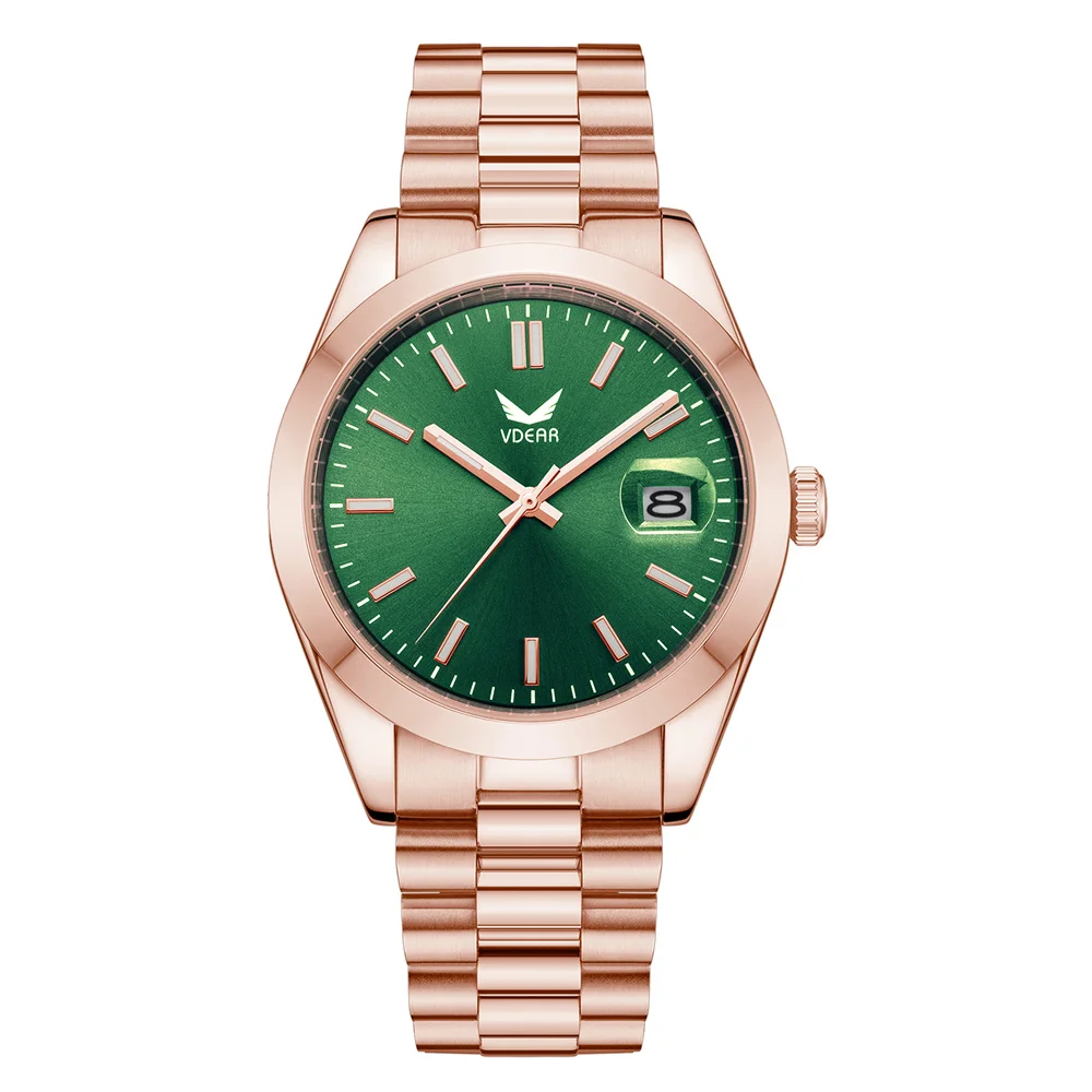 Rose Gold Luxury 5atm Waterproof Luminous Date Custom Men Watch With Logo Wristwatch Green Oem Automatic Mechanical Watch