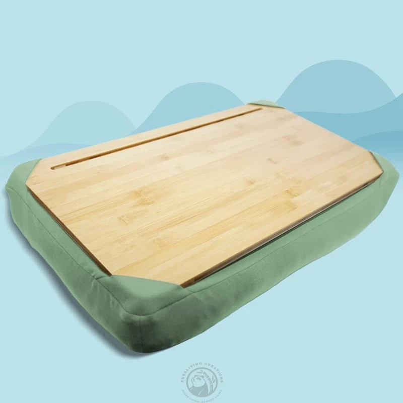Large Custom Bamboo Wooden Stand with Cushion for Home Office Laptop Lap Desk for Students Use