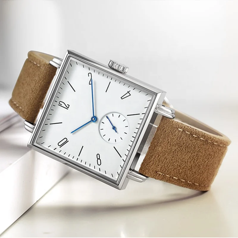 leather luxury watch men square case sports wristwatch watches and bracelets