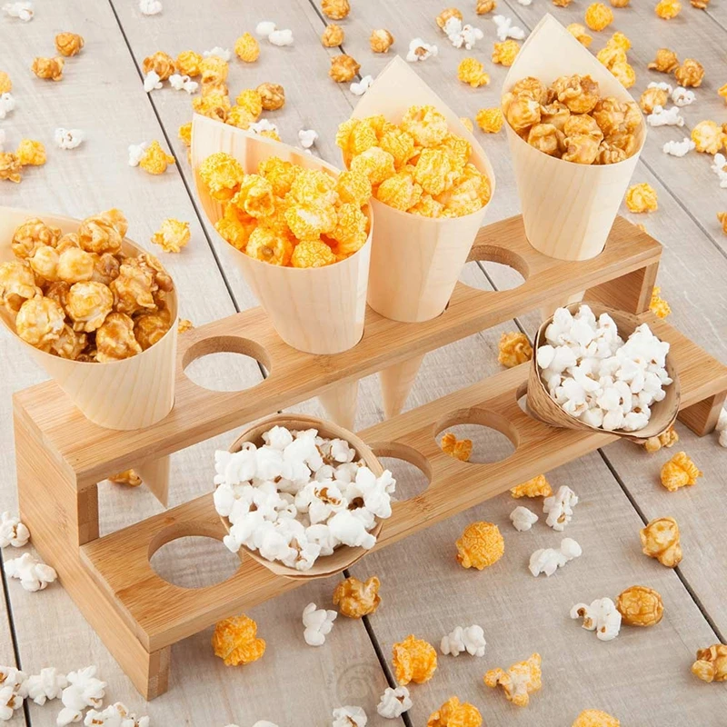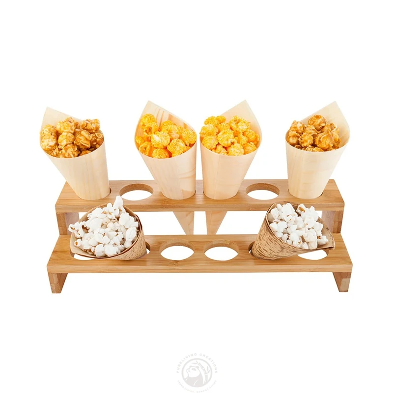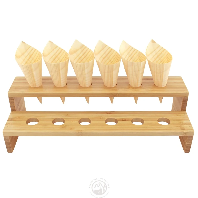 12 Slots Rectangle Natural Bamboo Cone Stand Ice Cream Cones Holder for Delicious Food