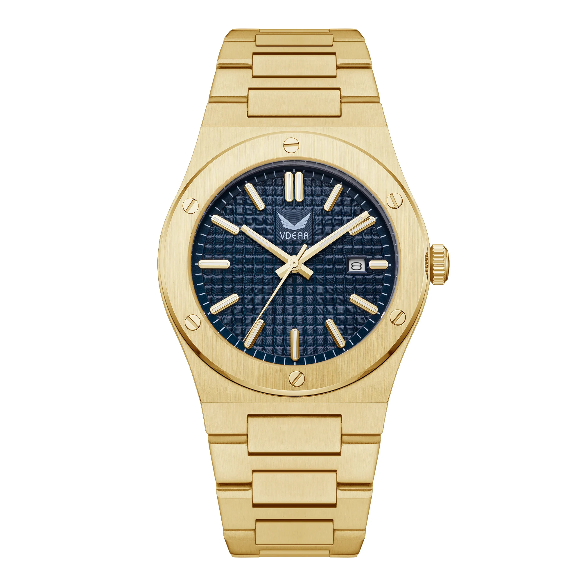 Fashion Quartz Gold Case Blue Dial Luminous Calendar Private Label Watches Japan Men Stainless Steel Highest Quality Wrist Watch