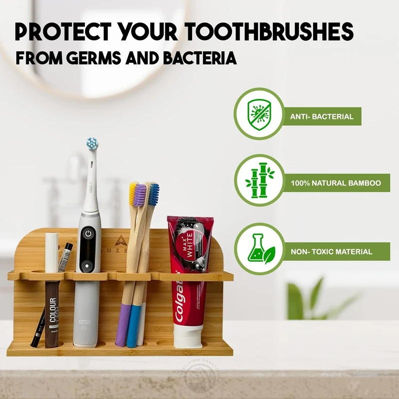 Made of 100% Sustainable Bamboo Stylish Wall Mounted Bamboo Toothbrush Holder