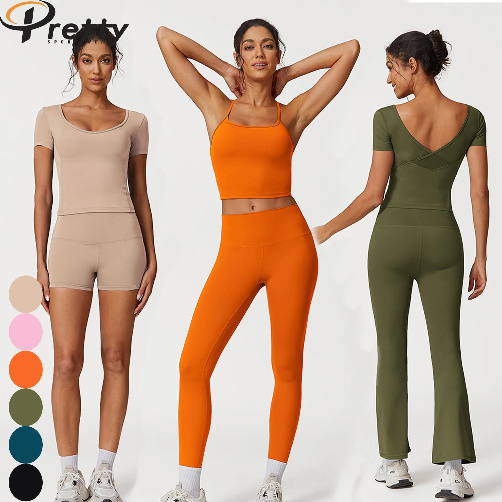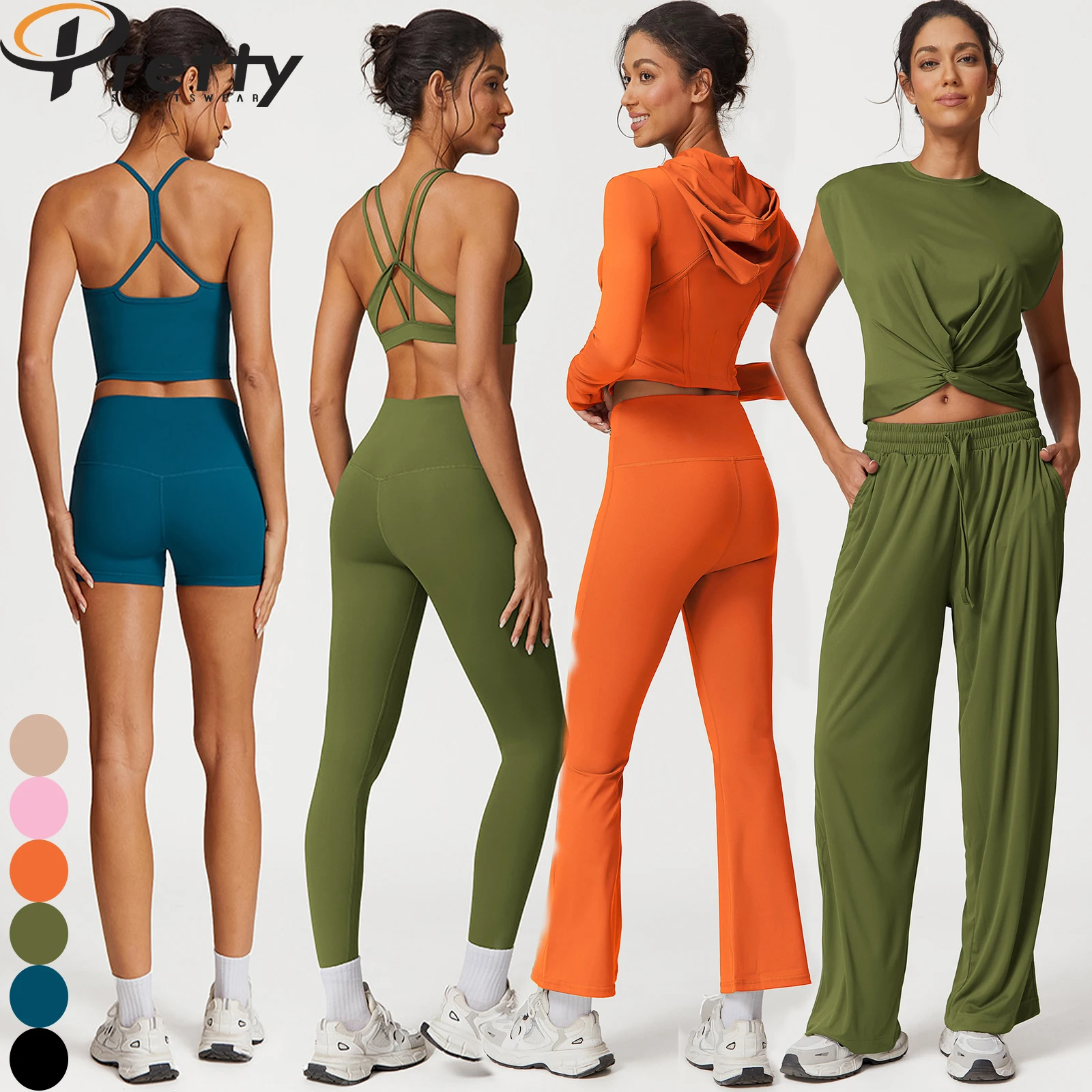 11 Pcs Women's Fitness Sets Yoga Bra Sports Vest Workout Shirts Athleisure Set Shorts Loose Pants High Waist Leggings Sportswear