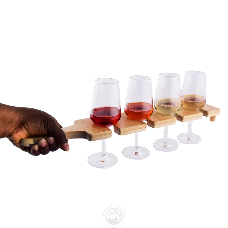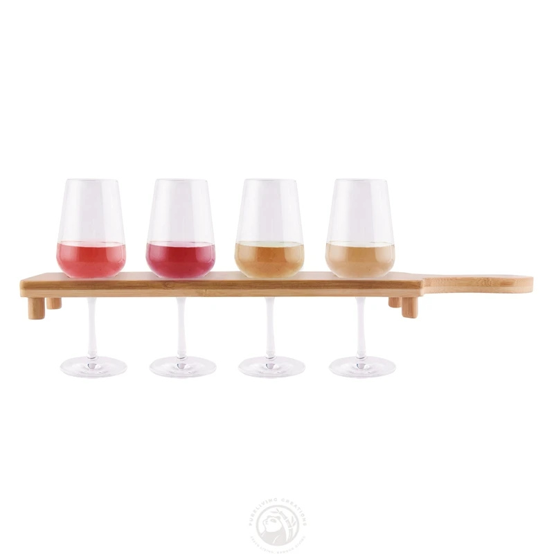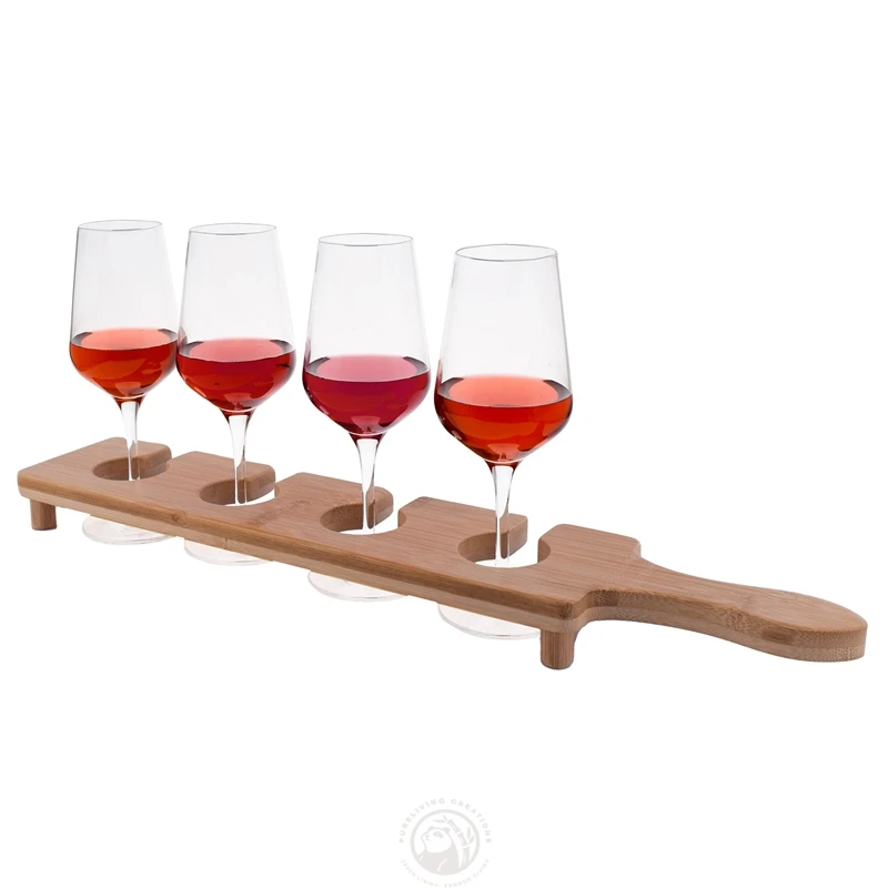 Four Glasses Natural Bamboo Wood Wine Flight Board with Mini Standing Legs