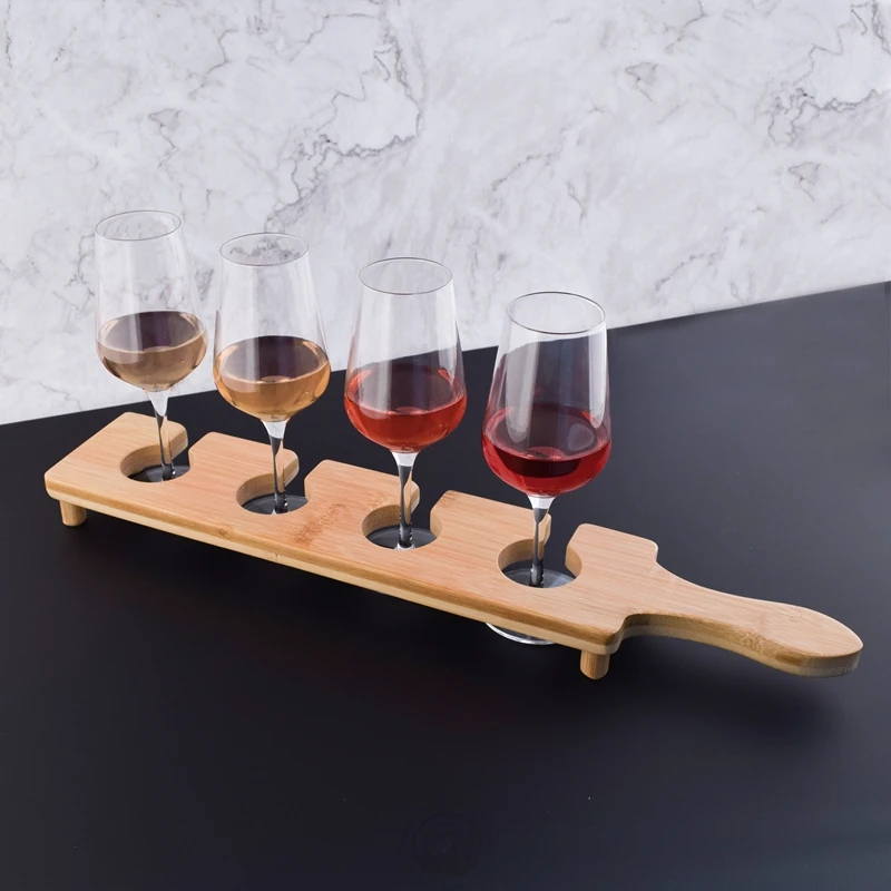 Four Glasses Natural Bamboo Wood Wine Flight Board With Mini Standing Legs