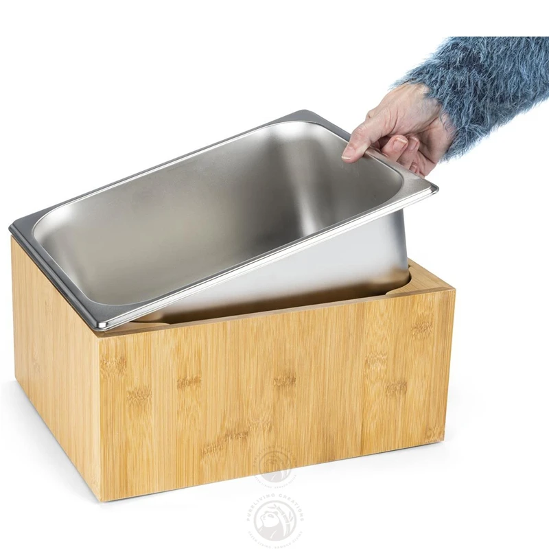 Rectangle Durable Bamboo Housing and Stainless Steel Ice Bucket for Wine Beverage