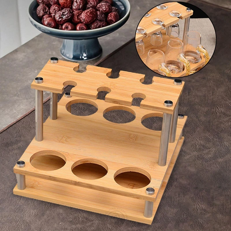 Countertop Storage 2 Tier Bamboo Wooden Wine and Wine Glass Holder for Home Decor
