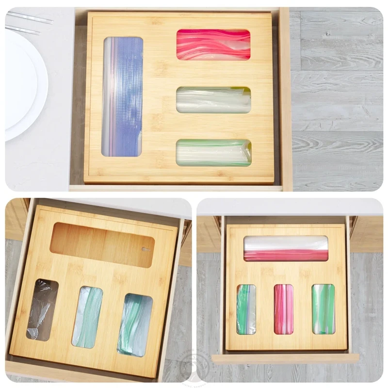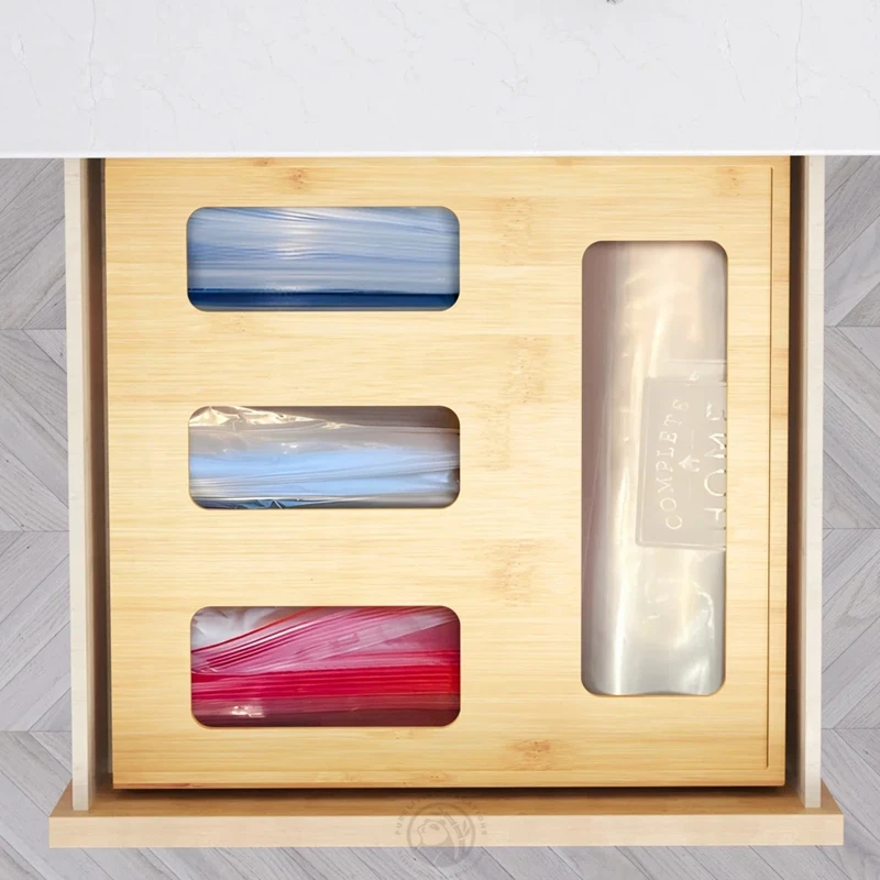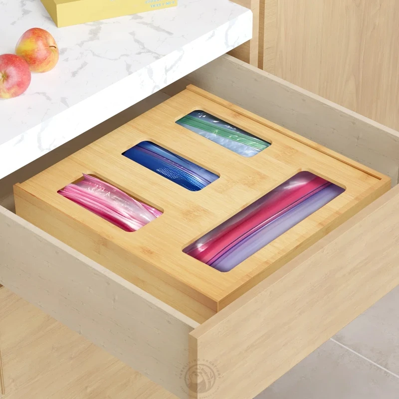 4 Slots Home Organization Kitchen Drawer Storage Bamboo ziplock Bag Organizer for Sandwich Snack Bags