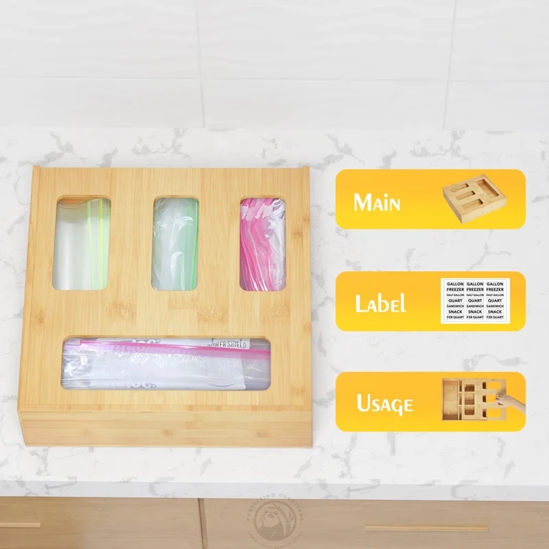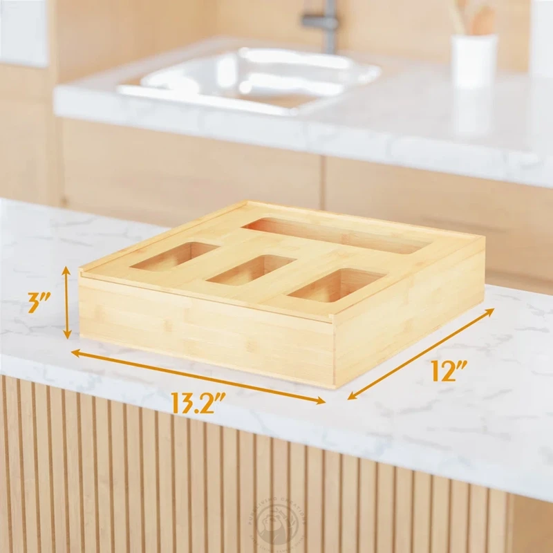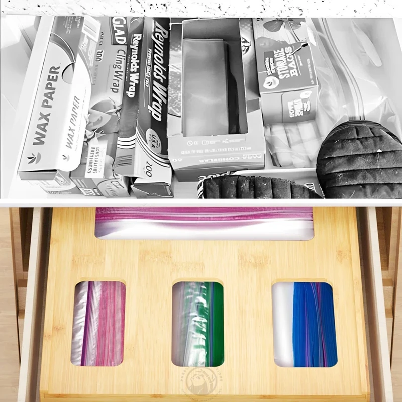 Bamboo Ziplock Bag Storage Organizer and Dispenser for Kitchen Drawer,Suitable for Gallon,Quart,Sandwich &Snack Variety Size bag