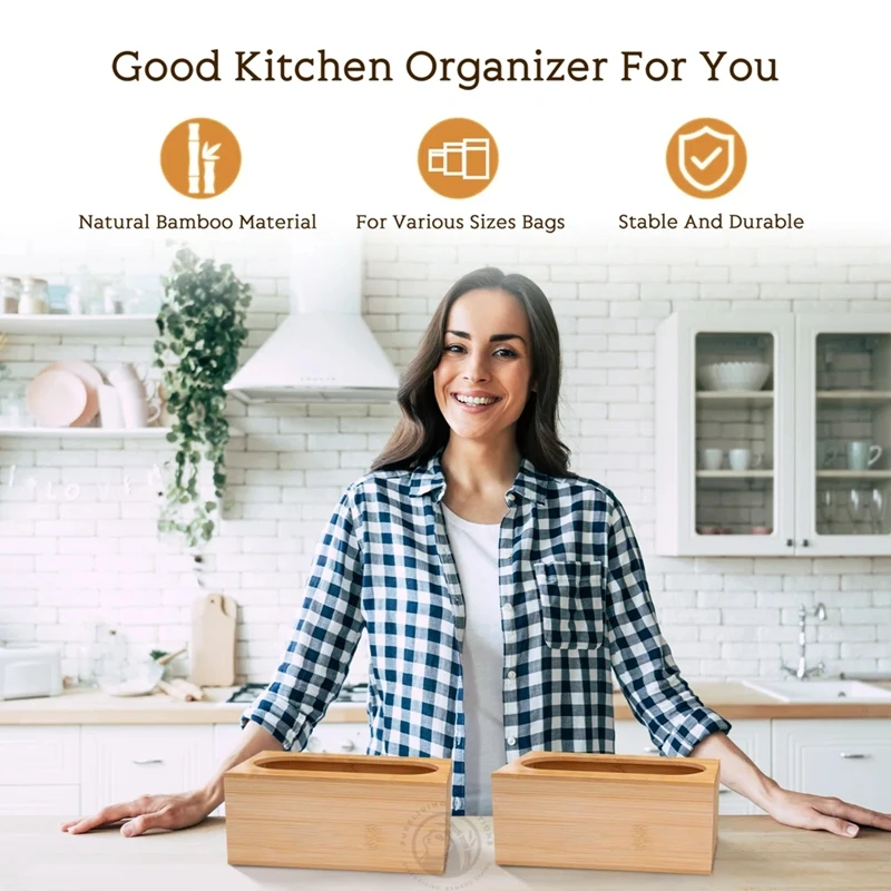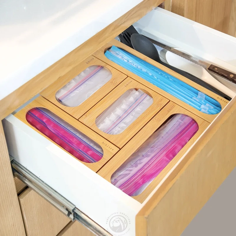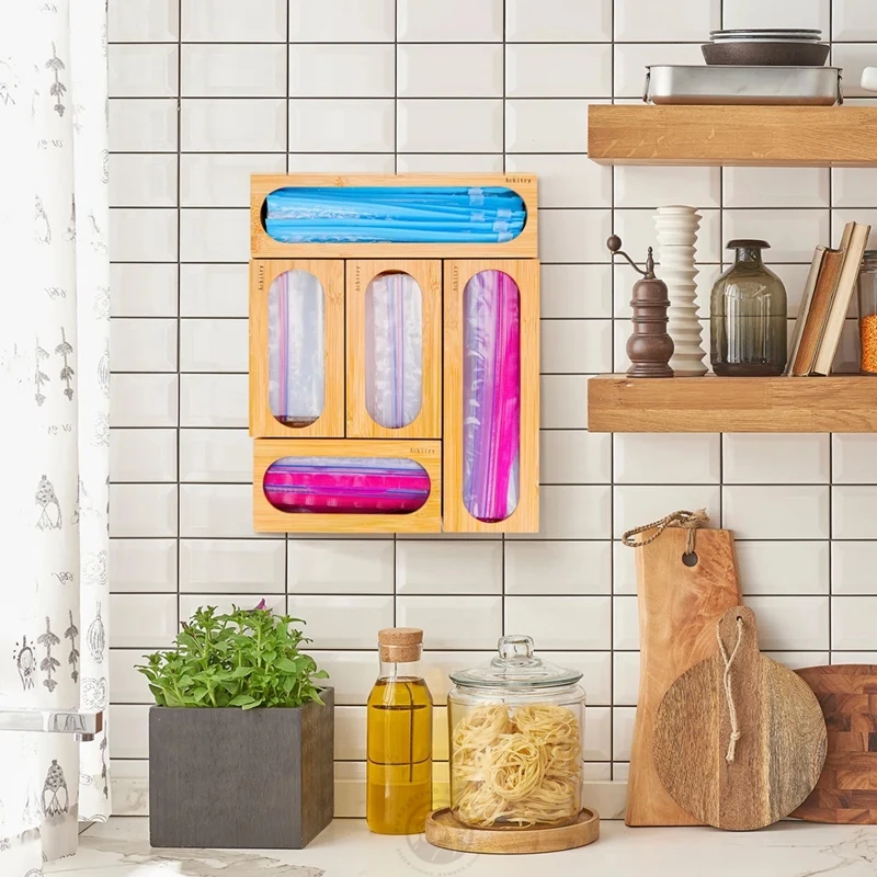 Foil and Plastic Wrap Dispenser Zip lock Ziplock Storage Bag Holders Dispenser Bamboo Bag Storage Organizer for Kitchen Drawer