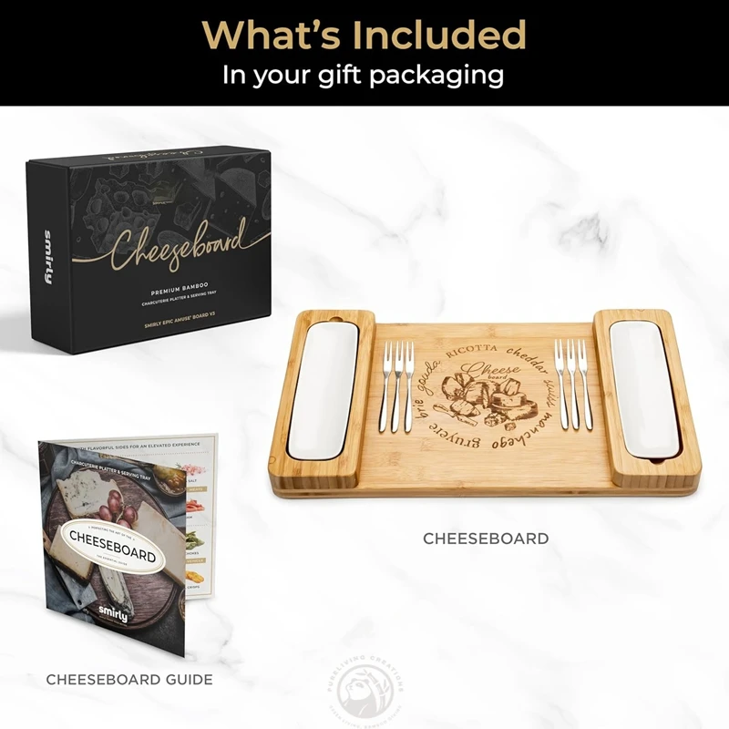 Bamboo Cheese Board Set - Large Charcuterie Board Set -Appetizer & Cheese Platter, Meat and Cheese Tray, Wood Serving Board