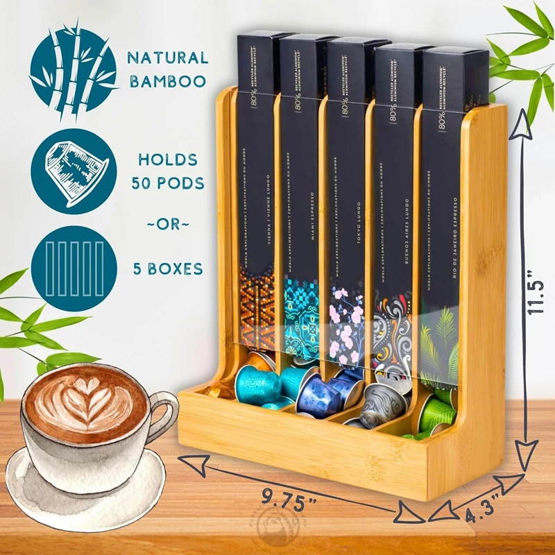 Bamboo Coffee Capsules Holder Stand for Nespresso Storage Original Capsules Holder