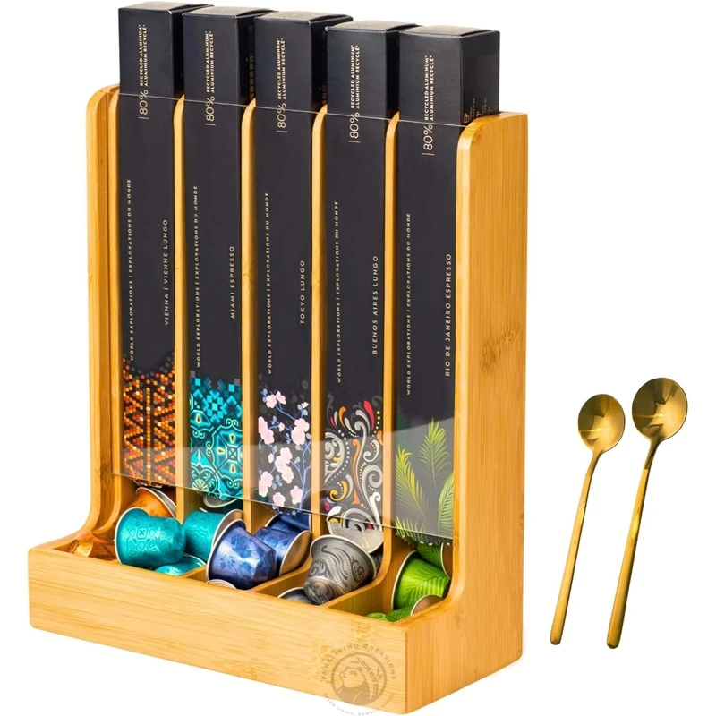 4 Slots compatible with Nespresso Pods Solid Bamboo Coffee Pod Organizer Coffee Pod Storage Holder