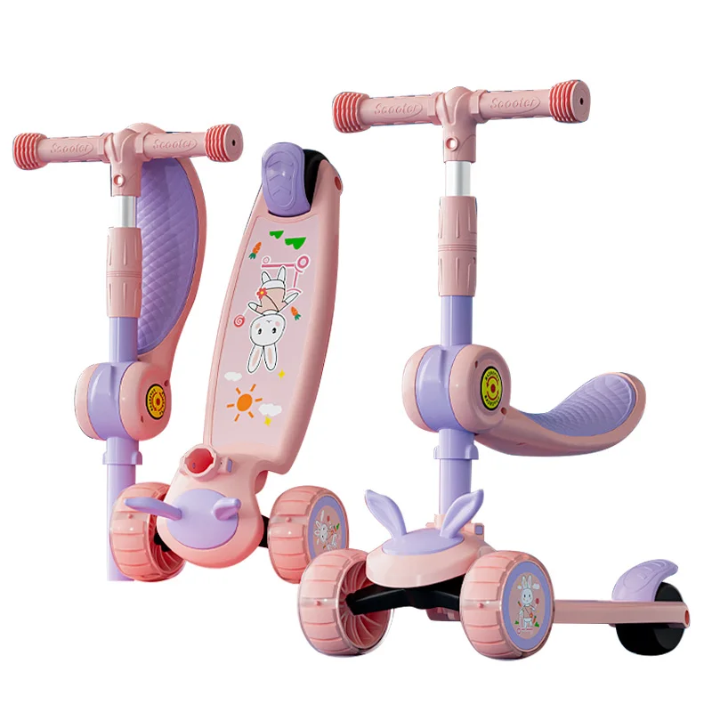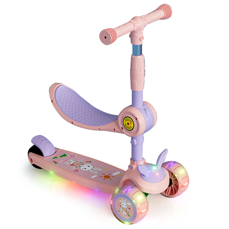 Removable Seat Extra-Wide Kids Scooter PU Light-Up 3 Wheels Foldable Children's Kick Scooters For Kids Age 3-12 Boys Girls