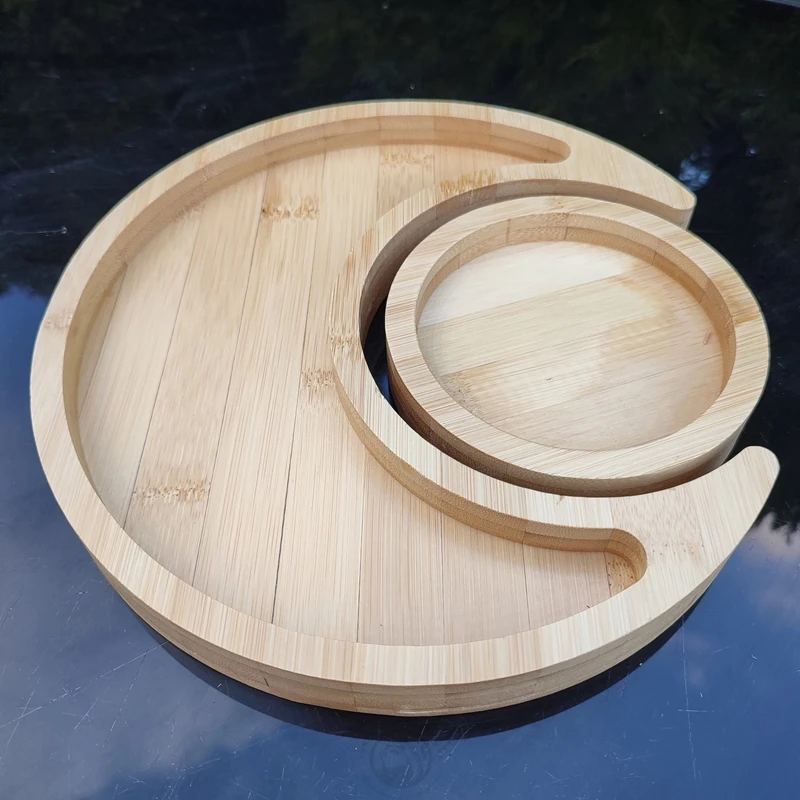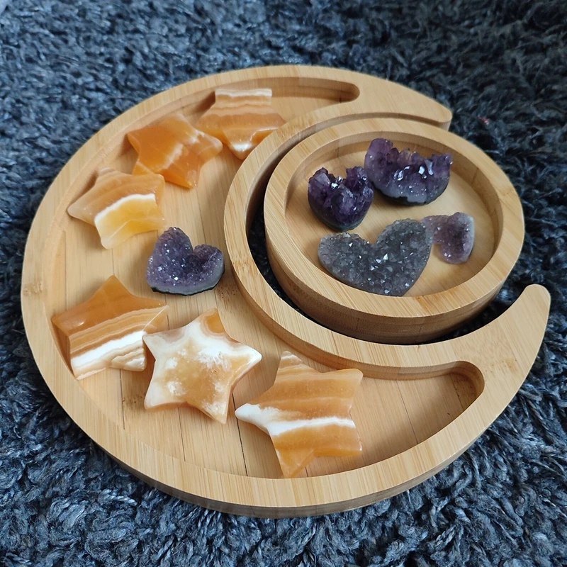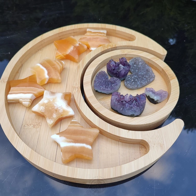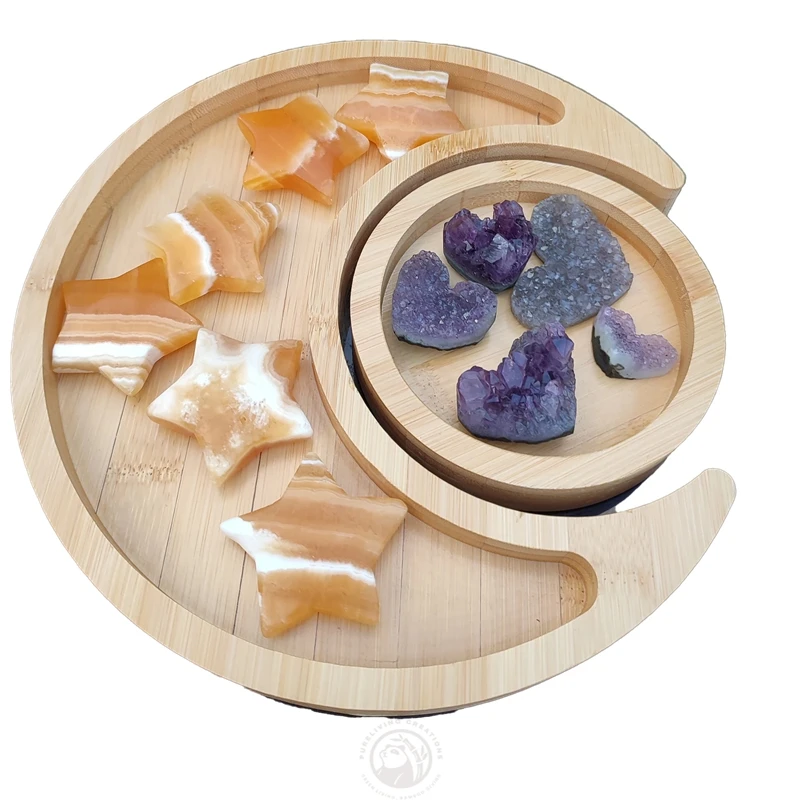Moon and Sun Set of Two Bamboo Decorative Wood Crystals Art Storage Trays for Crystals Sundries