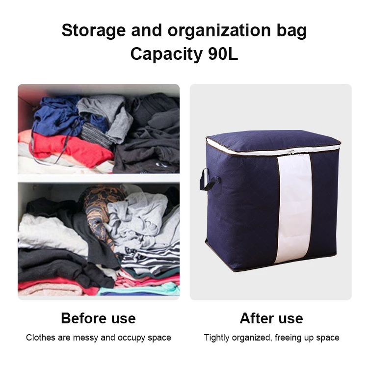 Keyword | 48X48X28 Blue Quilt Storage Containers For Clothes Foldable Fabric |
